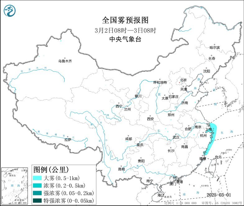 预测,3月2日白昼至夜间,长江口及杭州湾隔壁海域、舟山群岛隔壁海域、浙江沿岸海域、上海港、宁波港将有能见度不及1公里的浓雾。